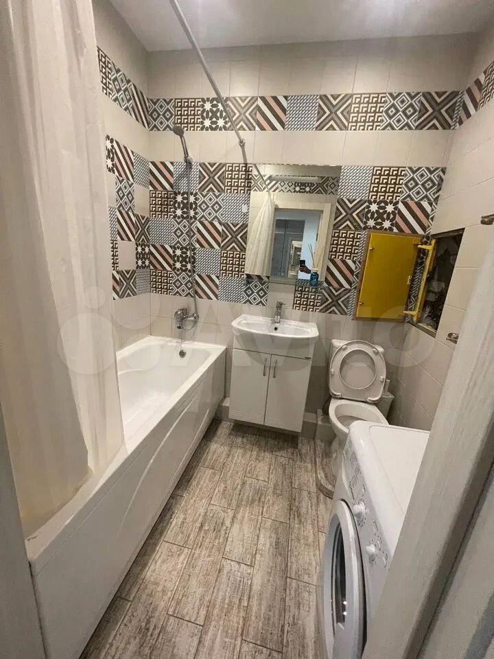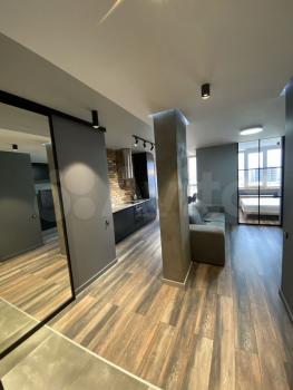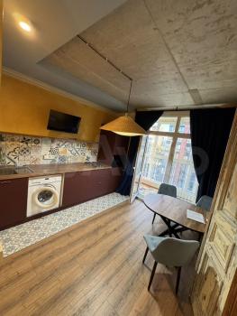 Квартира полностью готова для комфортного проживания. Здесь выполнен дизайнерский ремонт, который создает уютную и стильную атмосферу. В комнате и на кухне есть вся необходимая мебель. В квартире установлены кондиционер, холодильник, телевизор и стиральная машина, поэтому можно сразу заселяться и жить без дополнительных хлопот. Санузел совмещенный, оборудован ванной для вашего удобства.