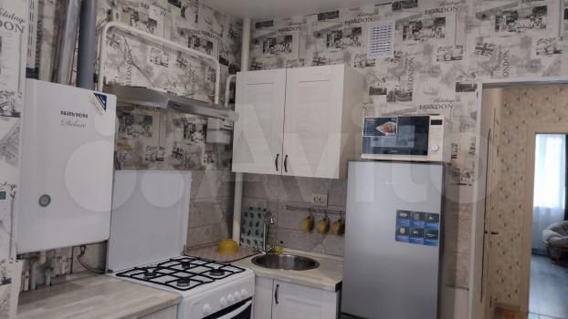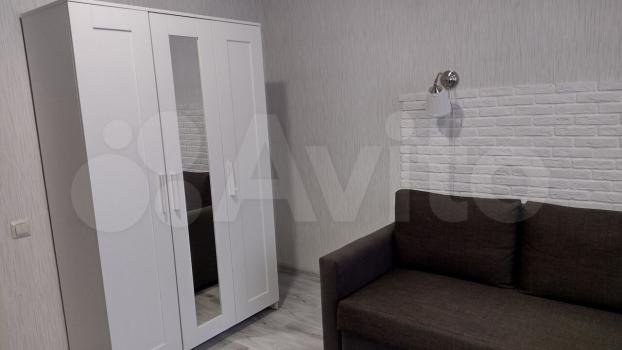 В комнате установлен шкаф и диван, сплит система есть телевизор. В кухне имеется вся необходимая бытовая техника: холодильник, плита, микроволновая печь и стиральная машина. Санузел совмещённый, оборудован душевой кабиной.