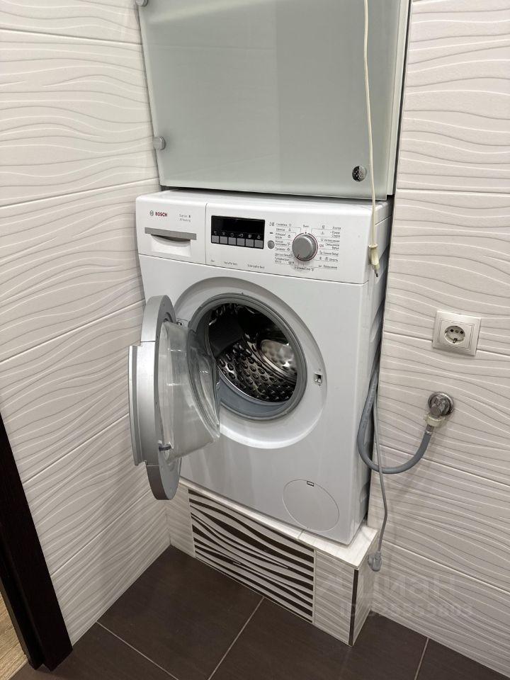 ?B ванной cтиpальная машина LG, шкафчик с подсветкой, корзина для белья