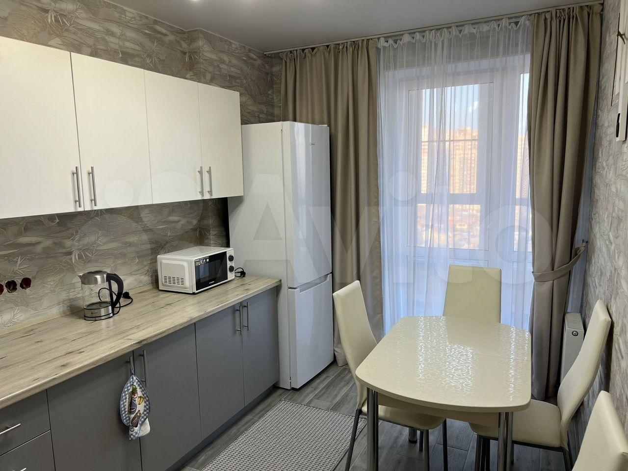 Квартира в состоянии евроремонта. Из мебели есть двуспальный диван, большой шкаф-купе, встроенная кухня. В наличии вся необходимая бытовая техника.