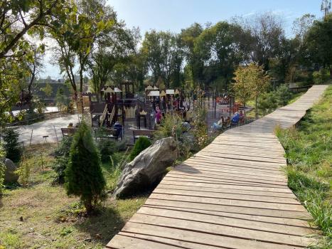 За домом расположен новый сквер с прудом и детской площадкой. Общественный транспортной во все направления.