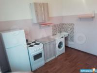 В квартире установлены: кухонная электроплита, стиральная машинка автомат и холодильник. Также на кухне есть кухонный и навесной шкафчик, обеденный стол. В комнатах мебель отсутствует, но висят шторы.