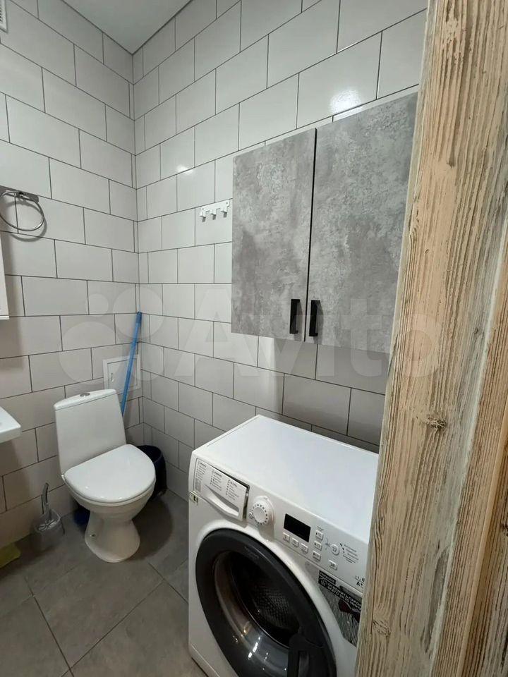 Санузел совмещённый, оборудован современной сантехникой и стиральной машиной. В подъезде работает пассажирский лифт, а во дворе открытая парковка.