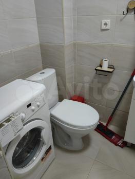 Санузел совмещенный, оснащен ванной и стиральной машиной. В прихожей предусмотрены удобные шкафы для верхней одежды и обуви.