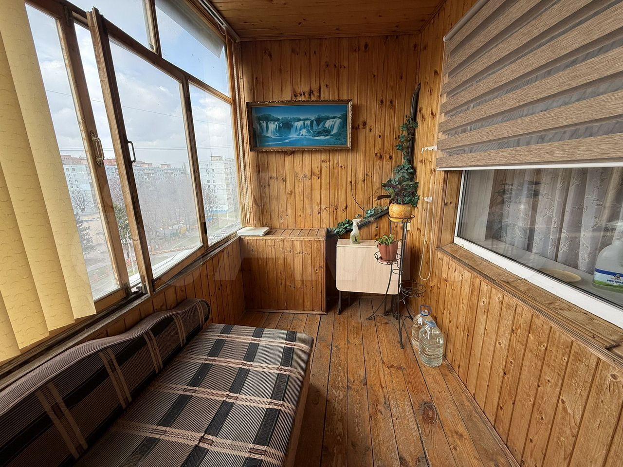 Санузел раздельный. Есть балкон с деревянной отделкой, откуда открывается вид на город. Парковка открытая во дворе.