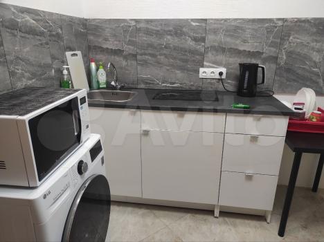 санузел - совмещённый, мебель - кухня, спальные места, кондиционер, холодильник, плита, микроволновка, стиральная машина.