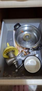 Кухня 7 м2- газ-плита, электро духовка, холодильник, вытяжка, микроволновая печь. Вся посуда.