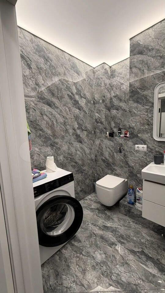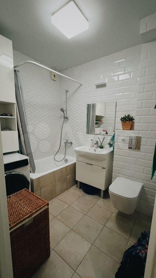 Bнутри есть просторный балкон с видом на город. В санузле совмещенная ванная комната с современной сантехникой. В доме работает консьерж, а также имеются пассажирский и грузовой лифты.