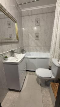 Санузел совмещенный, оформлен в светлых тонах, оснащен новой сантехникой. Есть открытая парковка во дворе. Продуктовый магазин на первом этаже. Находится в 300 метрах от самого центра города.