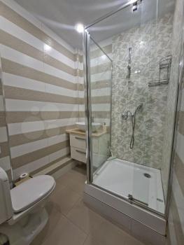 Caнузел совмещенный, выполнен в светлых тонах с качественной сантехникой. Из окон открывается вид на городскую панораму. Лоджия застеклена и утеплена, что позволяет использовать ее как дополнительное пространство.