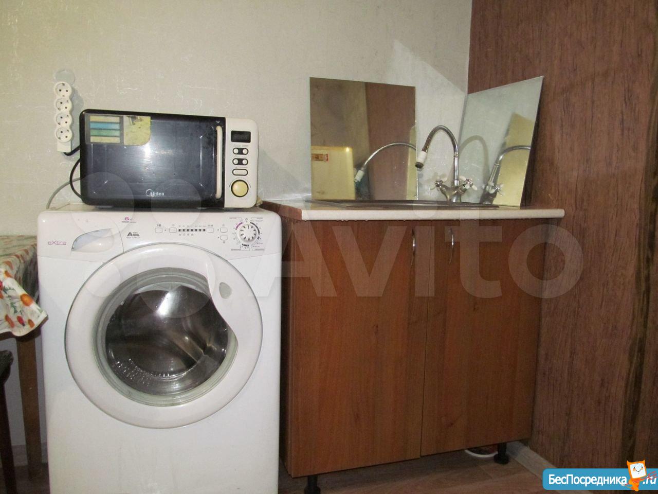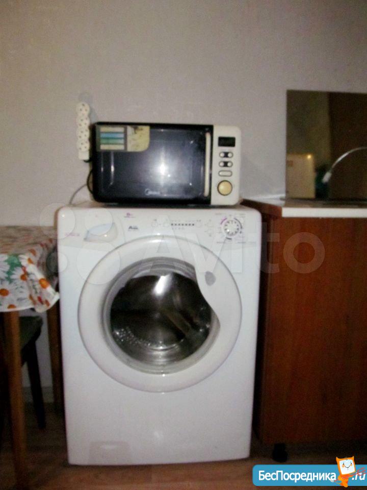 в комнате: чайник, холодильник, стиральная машина, встроенный гардероб.