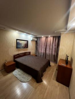 Состояние квартиры чистая, уютная квартира. Оборудована мебелью и техникой. Стиральная машина, холодильник, телевизор, плита,микроволновка, кондиционер, диван раскладывается на двуспальный , шкафы платяные, комод и тд