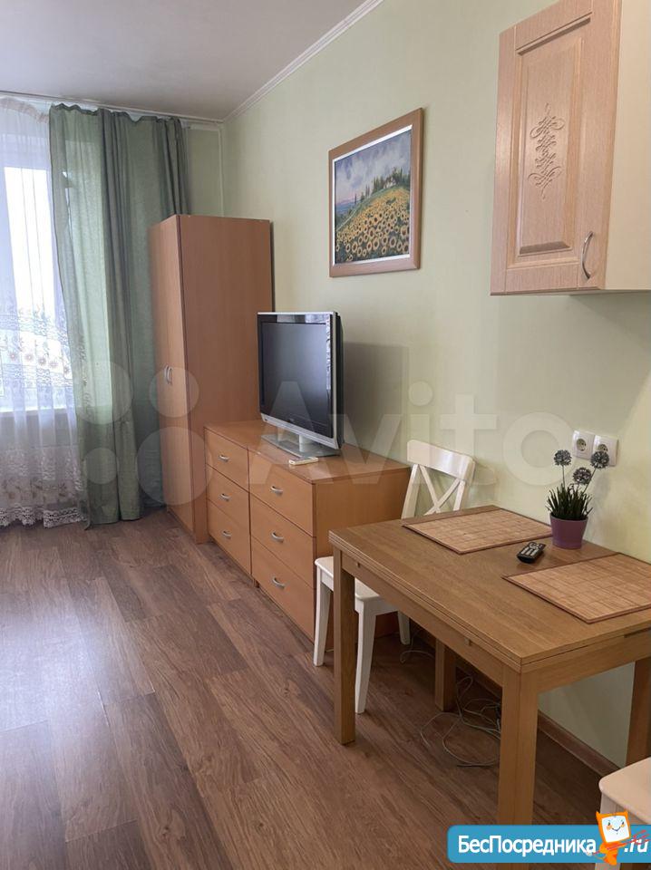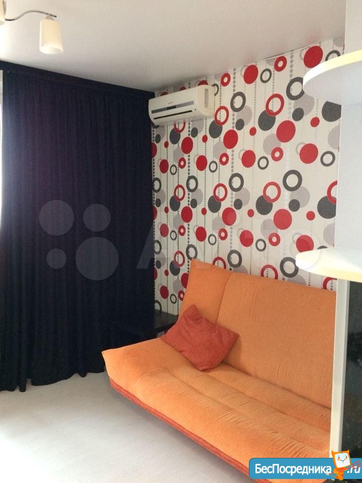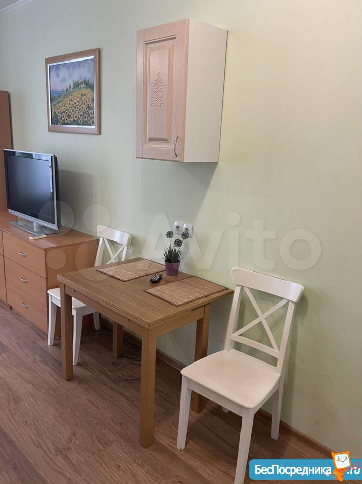 Квартира-студия, чистая, уютная. Дом с консьержем. Рядом школа, детский сад, гипермаркеты. Мебель необходимая имеется.