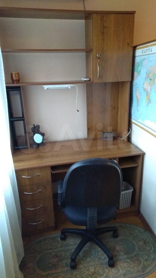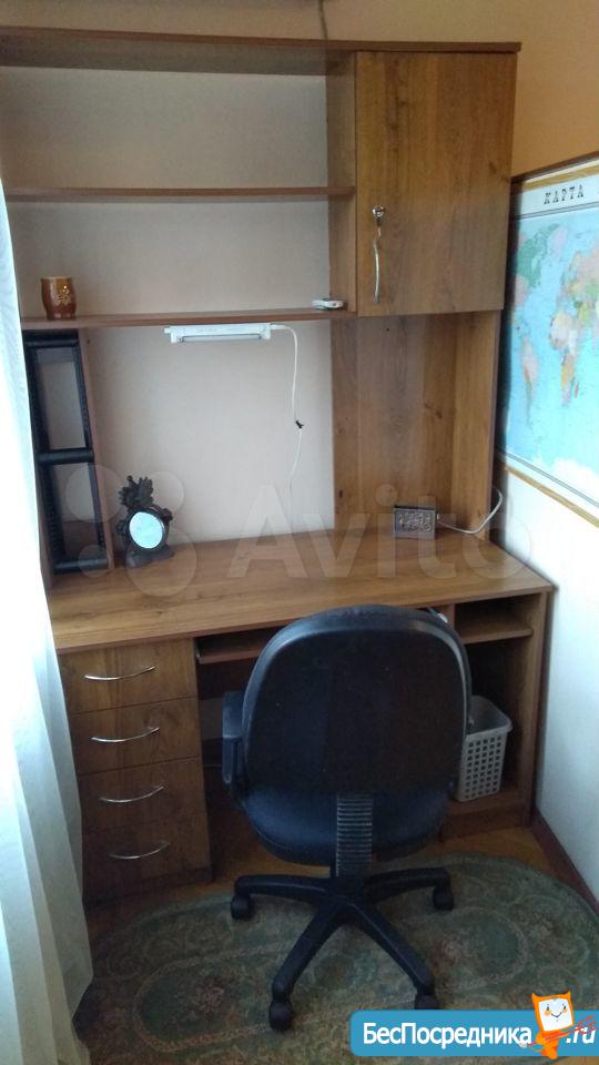 В комнате: комод, 3х-створчатый шкаф, кровать, стеллаж, стол, стул.