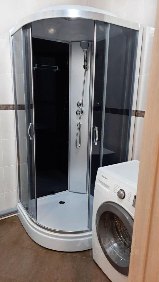 Стиральная машина установлена в ванной.