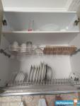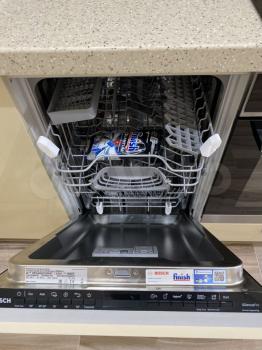 В квартире есть всё для комфортного проживания, полностью укомплектована новой мебелью и техникой. Две кровати, которые можно трансформировать в одну двуспальную, раскладной диван-кровать, столы, стулья, шкафы, холодильник, стиральная машина, духовой шкаф, варочная поверхность, посудомоечная машина.