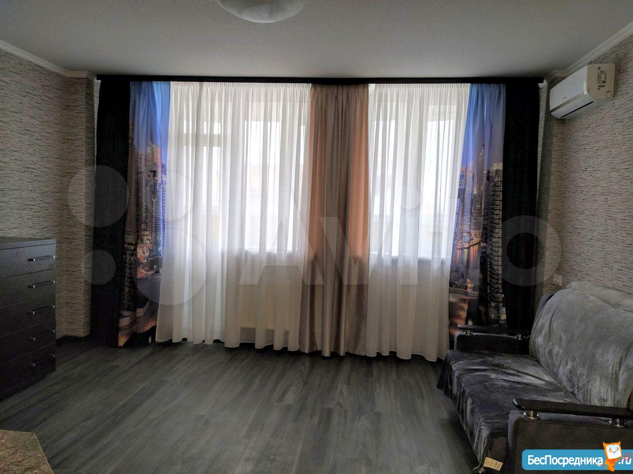 Уютная студия с чудесным видом на город в центе города! Великолепная транспортная доступность, прогулочная зона на Пушкинской, Театральная площадь, развитая инфраструктура. Новый дом с консьержем и видеонаблюдением.Идеально подойдёт для пары без детей, либо одного человека. В студии есть все необходимое для жизни - мебель, холодильник, сплит, телевизор, микроволновая печь, стиральная машина. Жильё для чистоплотных, не курящих в квартире, без животных, платёжеспособных людей, наличие паспорта РФ с регистрацией обязательно. Только на длительный срок. Стоимость аренды 24 000 плюс коммунальные платежи, залог 24 тыс ( не являются платой за последний месяц)