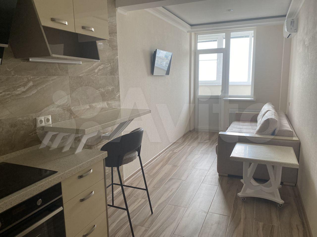Сдаётся отличная современная однокомнатная квартира студия в новом доме в самом центре Ростова, пересечение Пушкинская/Крепостной, 15 этаж, окна выходят на пешеходную Пушкинскую, кухня вынесена на утеплённую лоджию 8 м, полы с подогревом. Температура отопления регулируется.