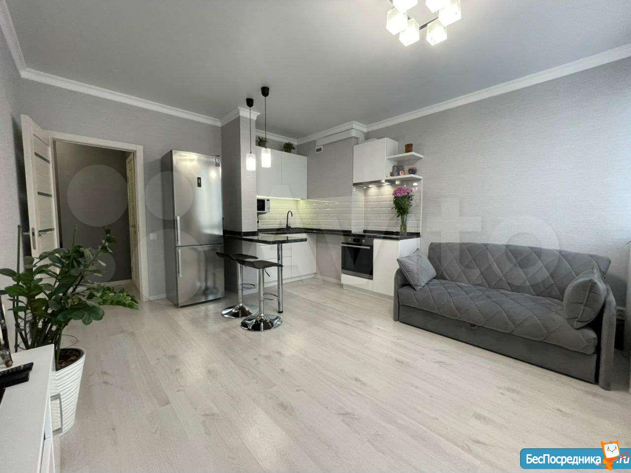 Для проживания в квартире есть вся необходимая мебель и бытовая техника, небольшая, но уютная кухня. Фото реальные.