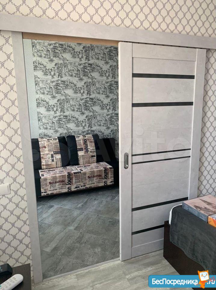 Сдаётся студия в новом доме в западном микрорайоне.