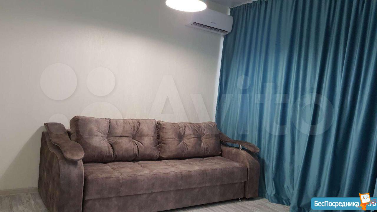 В квартире есть все для комфортного проживания : большая просторная комната, удобный совмещенный санузел, панорамный застекленный балкон, окна выходят во двор на южную сторону. Квартира укомплектована мебелью и техникой.