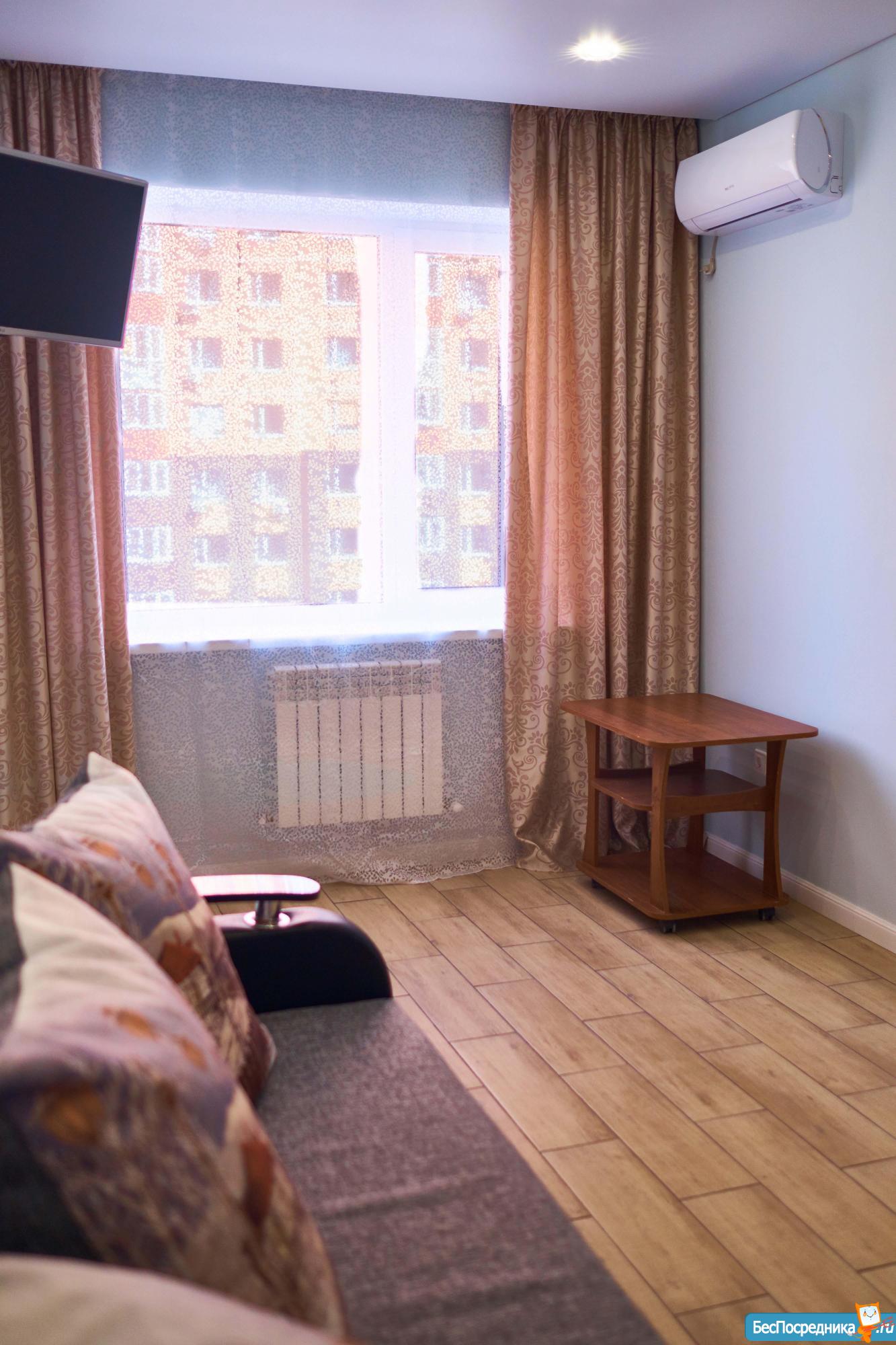 Сдаётся квартира в самом экологичном жилом комплексе России. В квартире все необходимое для жизни: сплит система, микроволновка, холодильник, стиральная машина, ТВ, утюг, гладильная доска, сушилка. Просторная лоджия. Вся техника и мебель новая. Окна выходят не «на соседа» а на дорогу. Парковка, остановка общественного транспорта, аптеки, салоны красоты, магазины Пятерочка во дворе. Напротив - круглосуточная автомойка самообслуживания. Красивая территория двора: светомузыкальный фонтан, беговые дорожки, аллея с лавочками. Бесплатный крытый тренажёрный зал во дворе. Удобное месторасположение - 10 мин на автомобиле до центра города.
