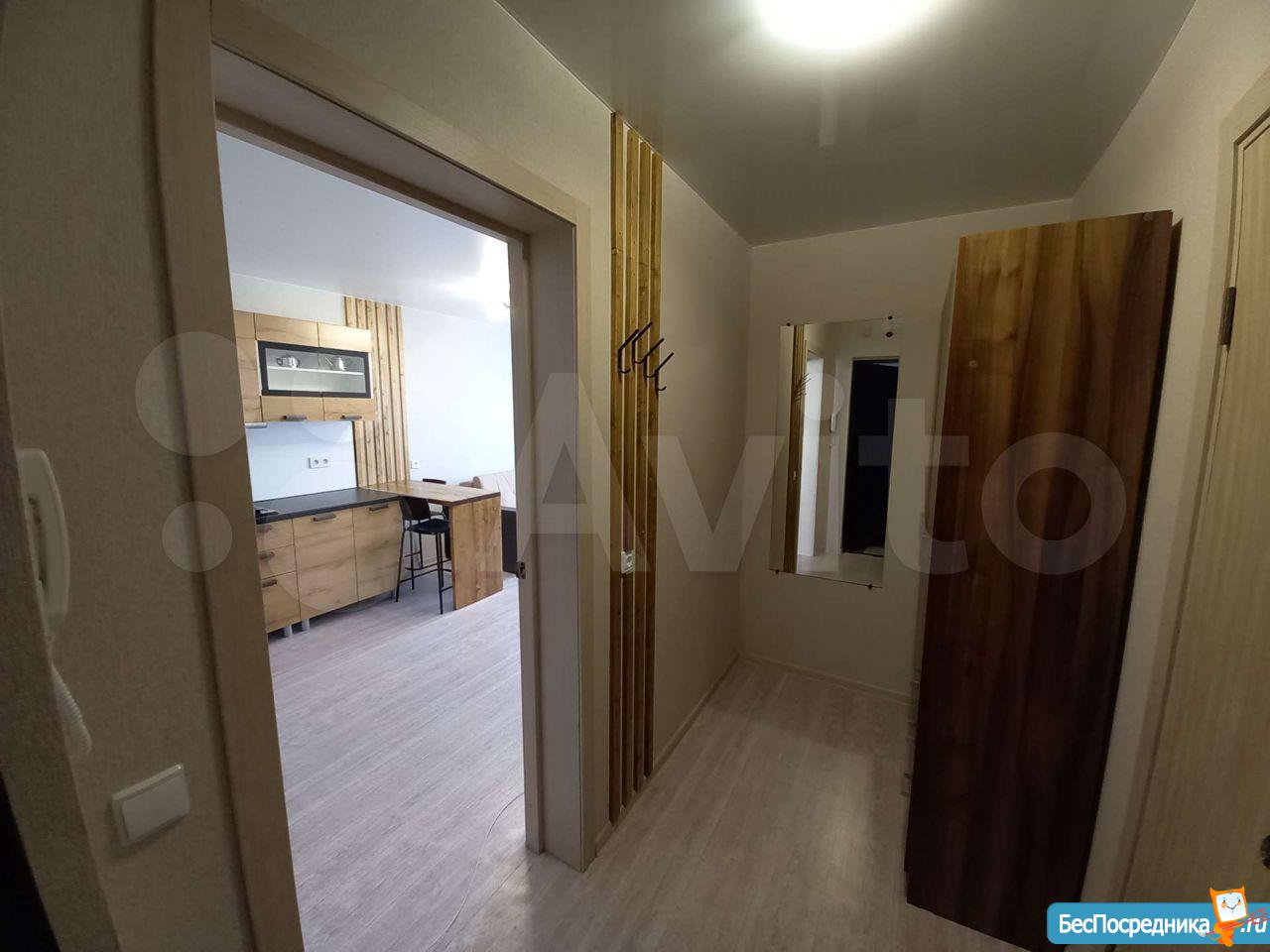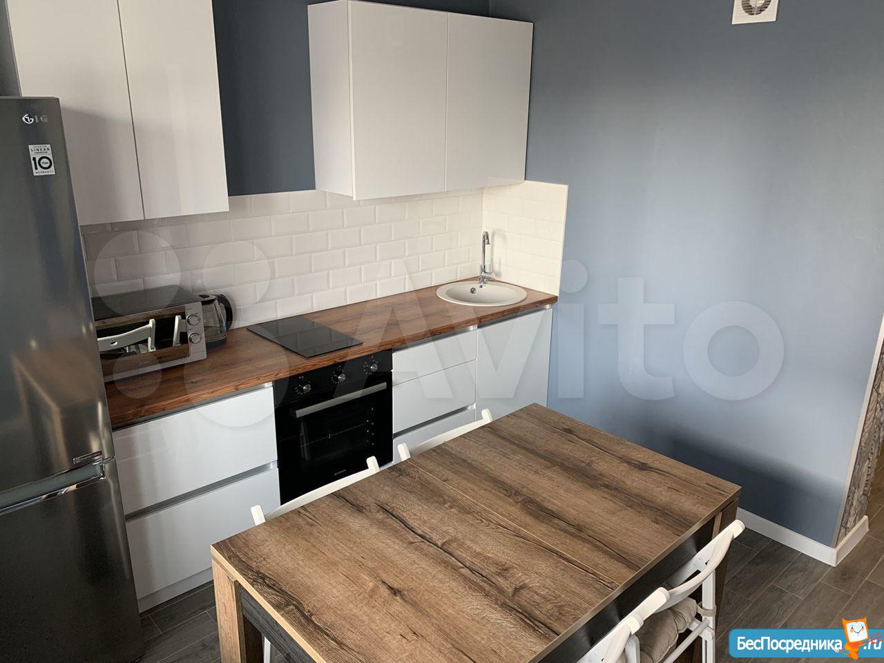 Новый дом, на кухне новая мебель, новая стиральная машина, в комнате мебель в хорошем состоянии, квартира светлая, теплая. Большой холл, где находятся двери всех квартир, отделен от лифта дверью. Дом недалеко от конечной остановки транспорта, в 5 минутах ходьбы большой ТЦ ( Магнит и т.п.)