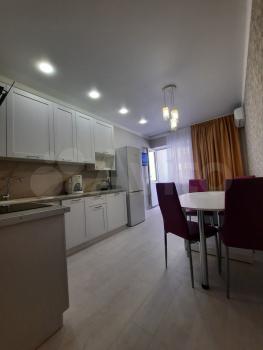 Квартира оснащена всей необходимой для комфортного проживания техникой и мебелью: встроенная кухня, холодильник, чайник, кофеварка, варочная панель, духовой шкаф,вытяжка, посудомоечная и стиральная машинки, телевизор, стол, стулья, диван, двухспальная кровать, шифонер, тумбочки, шкаф - купе, 2-е сплитсистемы.