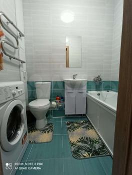 Имеется вся необходимая для проживания мебель и бытовая техника: сплит система, телевизор, пылесос, холодильник, СВЧ, варочная панель, вытяжка, утюг, электрический чайник, стиральная машина. Большая лоджия с двумя выходами, санузел совмещён.