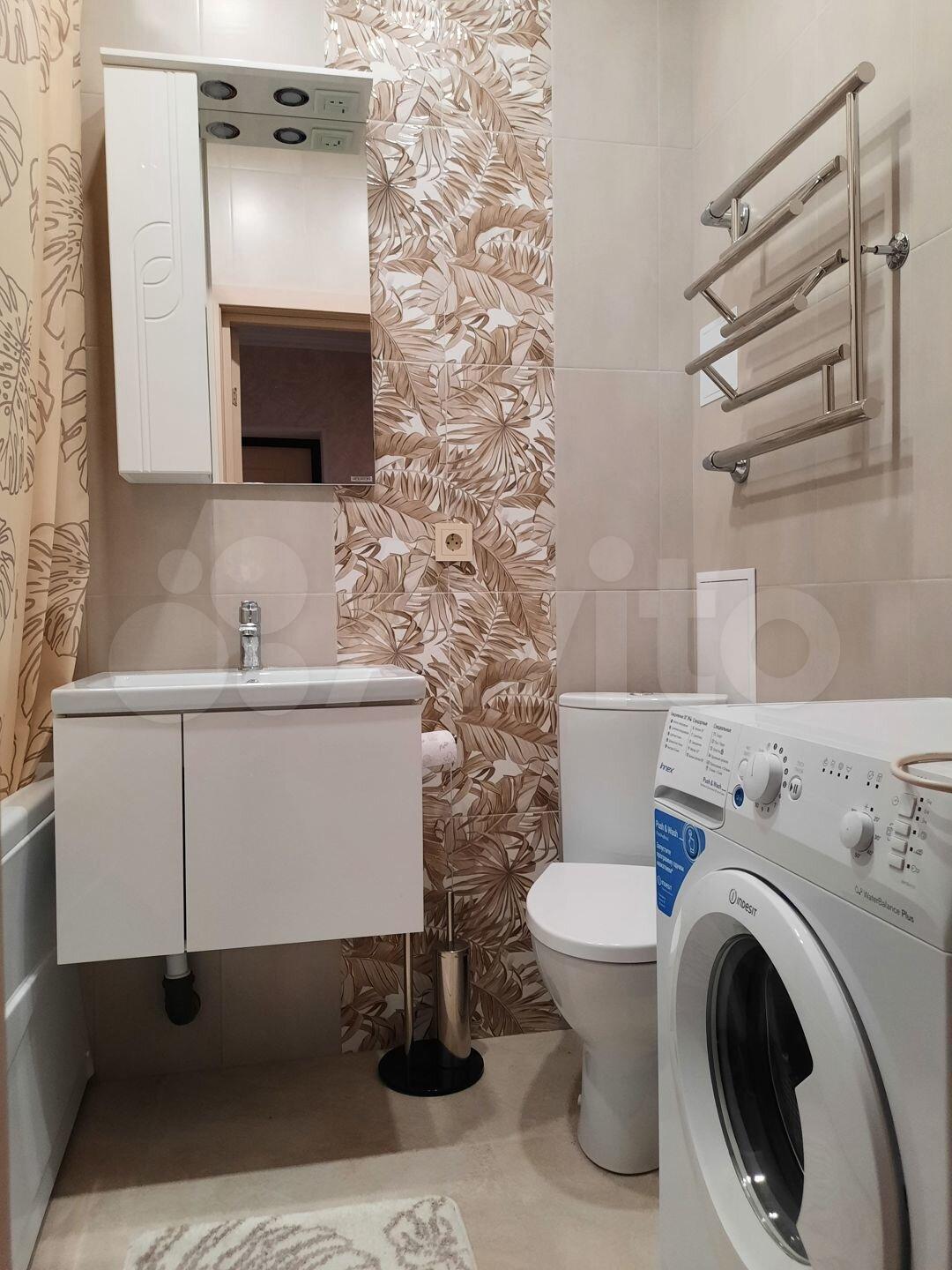 - Совмещенный санузел. Ванная. Стиральная машина.