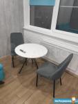 Пол полностью кафельный, в зоне где стоит стол, сделан легкий теплый пол. Фото полностью соответствует действительности.