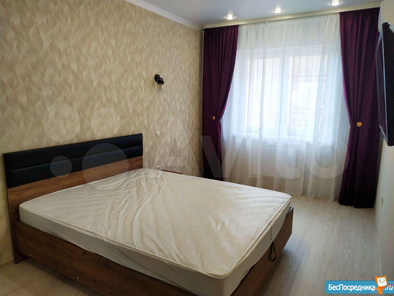 Собственник- без комиссии! Первая сдача, сделан хороший ремонт. Вся новая необходимая мебель, - диван, шкаф, стулья, кухня, новый холодильник, Эл. плита, чайник, стиральная машина! Телевизор при необходимости будет, есть балкон, в соседнем доме Пятёрочка и др. центр от Комсомольской площади - Буденновский 5 минут пешком, до Рижта 3 минуты, во дворе много детских площадок! Собственник!