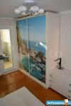 Вы оцените фотообои на стене одной спальни, на дверях шкафа-купе в другой и зеркальные двери во всю высоту второго шкафа-купе.