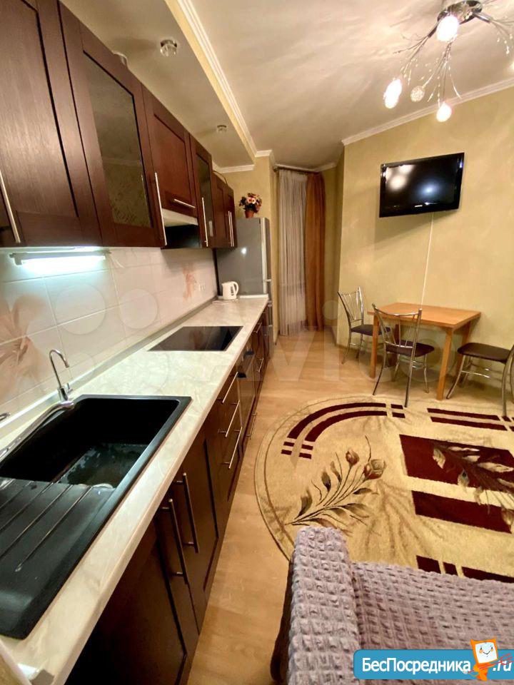 Сдам большую однокомнатную чистую ухоженную квартиру в свежем доме . Отдельная спальня и большая студия зал-кухня . В цоколе дома находится торговый центр МИР , Магнит , DNS и много других . Школа , детский сад в шаговой доступности . Остановка городского транспорта находится прямо возле дома , остановка конечная поэтому можно без проблем и легко уехать в любом направлении . До центра города 15-20 мин на маршрутке . Парковка есть во дворе дома , за домом и плюс подземная можно отдельно снять машиноместо . Я СОБСТВЕННИК КВАРТИРЫ и поэтому сделка будет без комиссий и агентских вознаграждений .