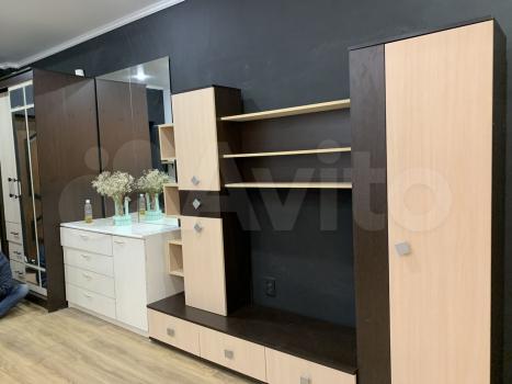 Ванная комната , совмещены ( ванная , туалет и стиральная машинка ) . Коридор : шкаф купе , комод и гостиная стенка . Кухня : плита , микроволновая печь , холодильник , посуда .