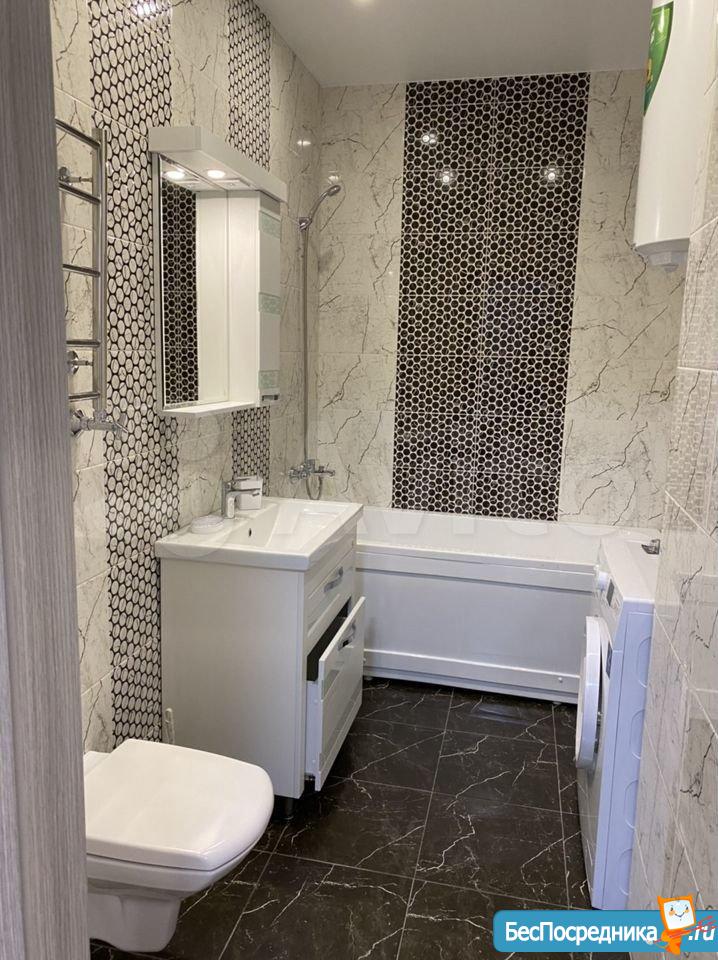 В квартире по контуру сделана шумоизоляция, заменены все инженерные коммуникации, включая стеклопакеты, утеплена по периметру лоджия, большая (7,7кв. м!!!), с тёплым полом, с рулонными шторами... можно как кабинет использовать или гостевую комнату (при необходимости установим спальное место). Квартира укомплектована всей новой мебелью: двуспальная кровать с ортопедическим матрасом, диван раскладной (1,4), шкаф-купе с зеркалом, кухонный гарнитур, гардеробная зона, прихожая, гладильная доска и пр. Также вся техника новая: 2 телевизора, 2 сплита (9-ки), холодильник, вытяжка, микроволновка, чайник, стиральная машина, бойлер на 80 литров.