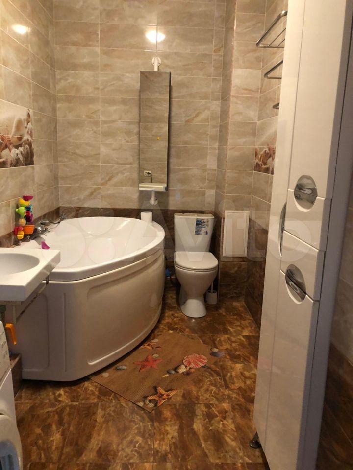 В комнaтe устaнoвлены шкафы и диван, ecть телeвизор. Из мебeли такжe имeeтся обеденный стол и стулья. Кухня просторная, оснащена холодильником и плитой. Санузел совмещённый, оборудован ванной и стиральной машиной.