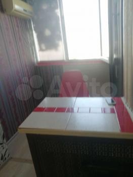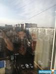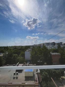В квартире: шкаф, диван раскладной, комод, стол складной, 6 табуреток, стол на кухне, кухня, плита газовая, стиральная машина, микроволновая печь. Лоджия застеклена. Окна вы0одят во двор, на восток. Много деревьев. Сплит системы нет.