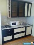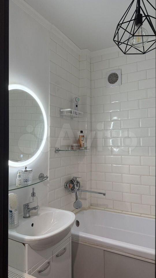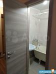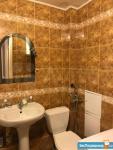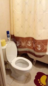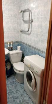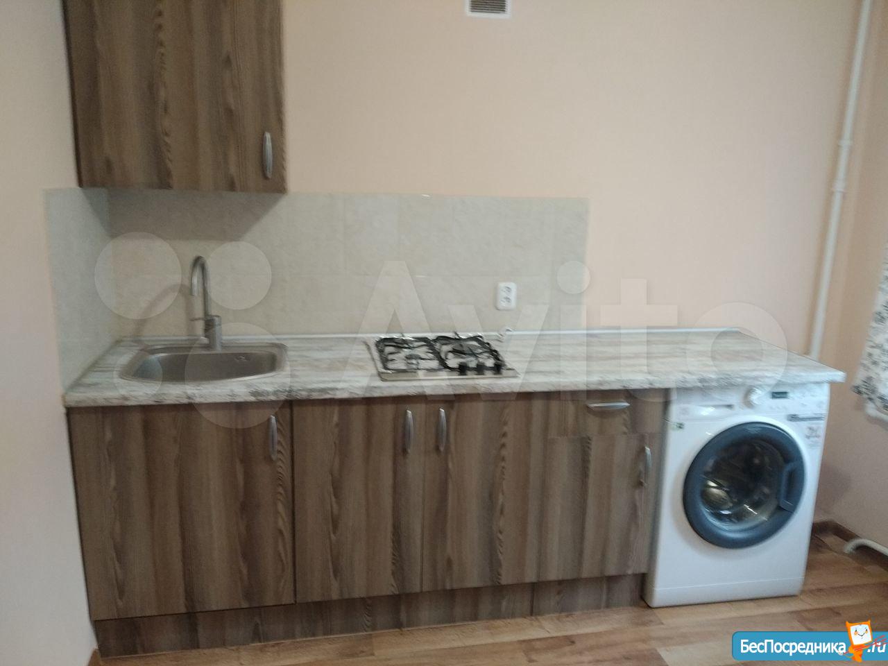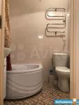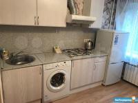 Кухня оборудована всем необходимым: газовой плитой, вытяжкой и современной мебелью. Санузел совмещенный, оформлен в светлых тонах, оснащён ванной и стиральной машиной.