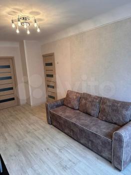 Квартира после косметического ремонта (новые межкомнатные двери, везде новые линолеум и обои, новая плитка в туалете и на кухне, новые батареи, потолки - новая покраска, мет/пл окна). Хорошая качественная кухня, новый смеситель; в большой комнате новый диван со спальным местом; в маленькой комнате большой шкаф и разбирающийся диван с новым чехлом.
