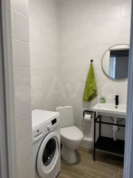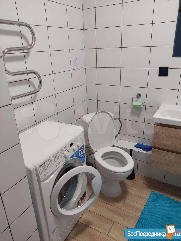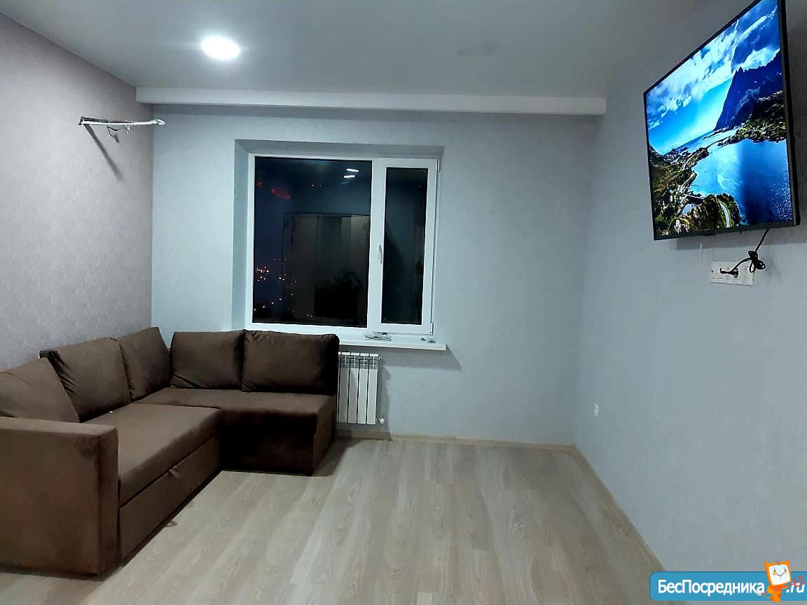 Однокомнатная квартира в новом доме с индивидуальным отоплением (всегда в наличии горячая вода, экономия по отоплению). В квартире: двуспальная кровать, шкаф, диван, кухонный гарнитур, плита, холодильник, обеденный стол, стулья, стиральная машина.