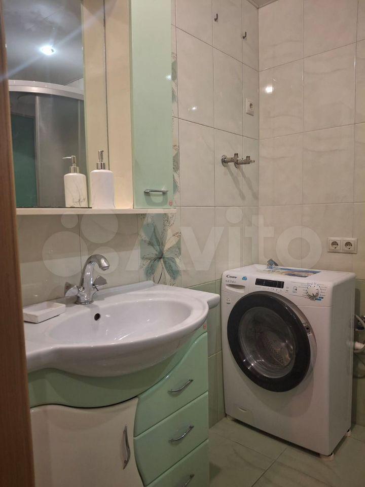 Квартира предлагается без ремонта, но с необходимой мебелью в комнате и на кухне. Из техники в вашем распоряжении будут кондиционер, холодильник, телевизор, микроволновка и стиральная машина.