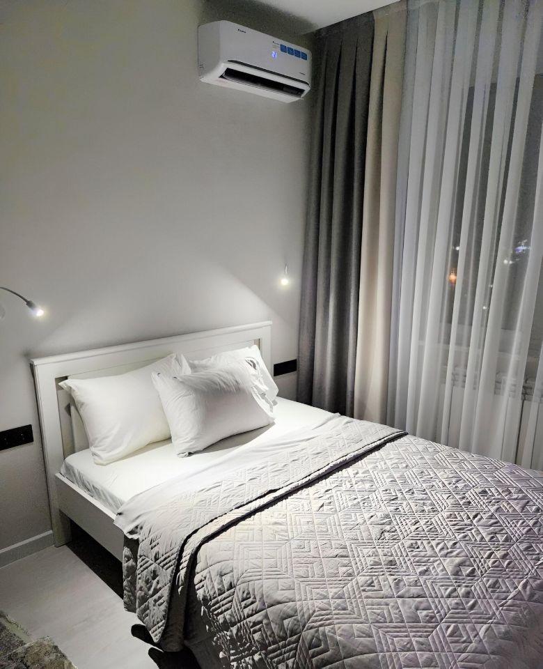 КОМНАТА 18 кв.м.: двуспальная кровать Аскона с ортопедическим матрасом 160х200, диван, телевизор Sаmsung 43" Smаrt, сплит-система Наiеr, ролл-шторы на окне ВlасkОut.