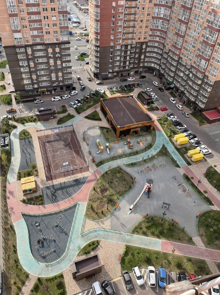 Двор закрытый, в нем находятся: крытый тренажёрный зал( бесплатный), современные детские площадки, стадион для занятий спортом и игр, множество магазинов, кофеен и кафе. В 5 минутах от дома находится новая школа. Остановка общественного транспорта в 6 минутах от дома.