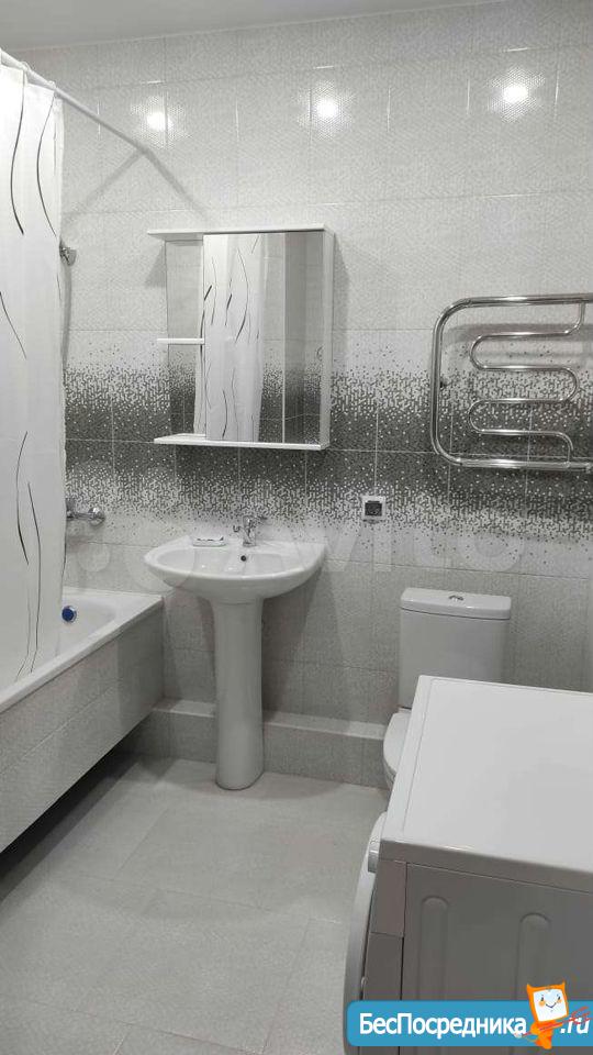 В квартире сделан качественный современный ремонт, встроенная кухня, вытяжка, духовой шкаф,3-х комфорочная варочная панель, барный стол и стулья, холодильник, стиральная машина, телевизор, диван, утепленный балкон 4 кв.м.