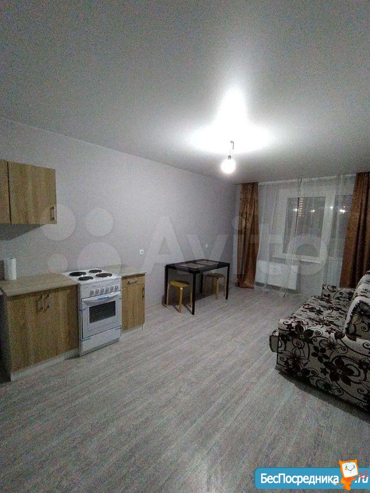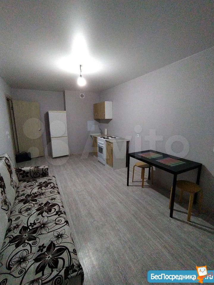 Сдается квартира-студия на длительный срок (без домашних животных). В квартире холодильник,стиральная машина с вертикальной загрузкой,диван,кухня, стулья,стол