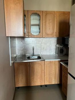 В квартире имеется - кухонный гарнитур, электро плита, холодильник, стиральная машина, спальное место, место для хранения.