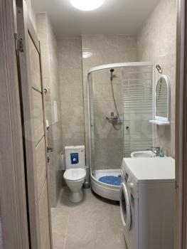 Сан узел совмещенный , душевая кабина , и стиральная машина.