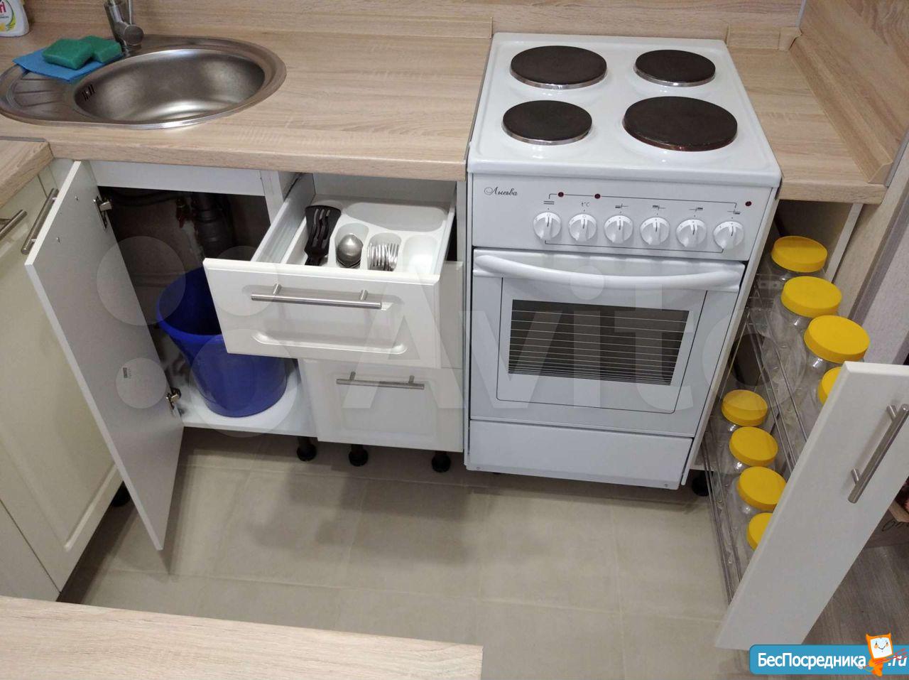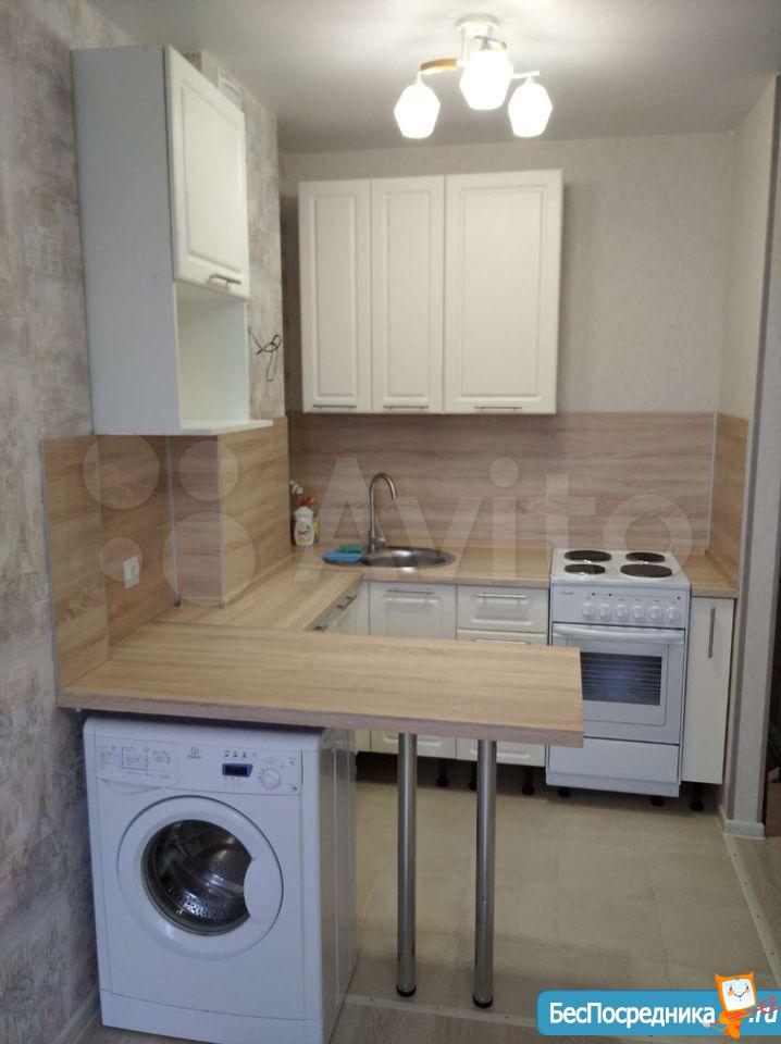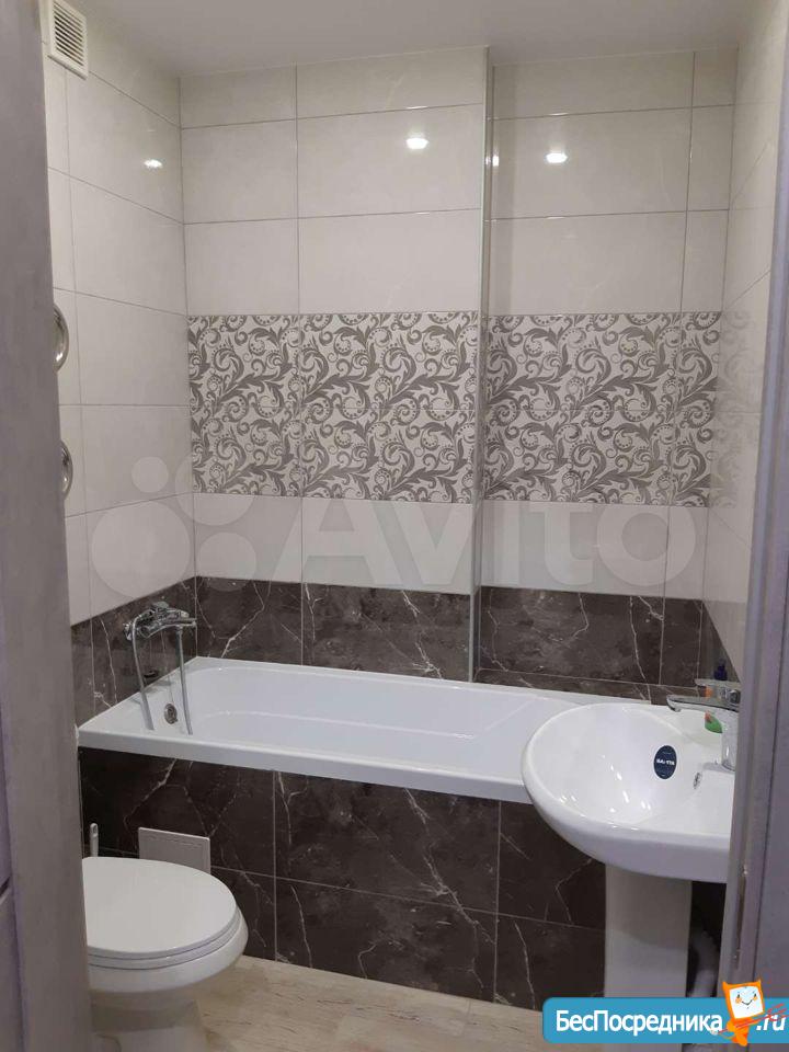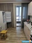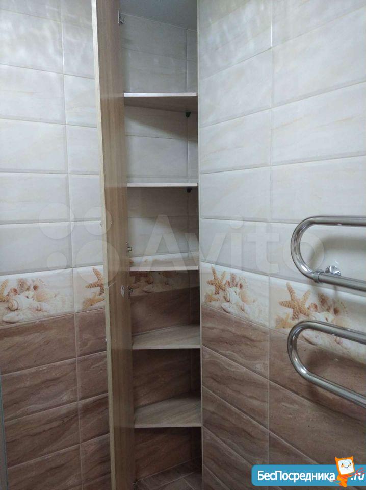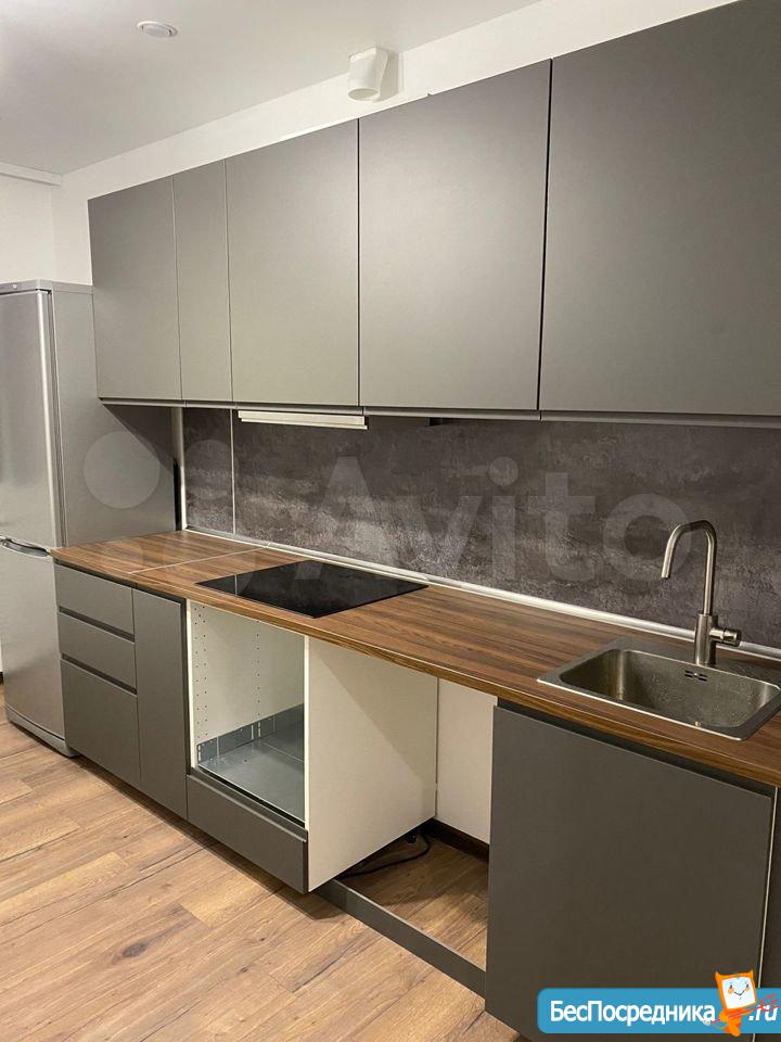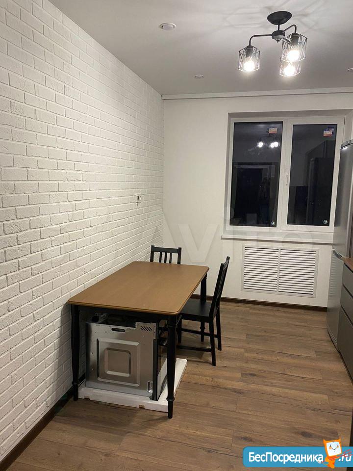 В квартире сделан ремонт, вся новая мебель, стоит холодильник, стиральная машина, микроволновая печь, электроплита, вытяжка. Есть счётчики на горячую и холодную воду.