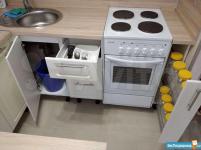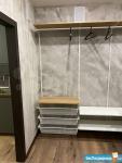 Вся техника, мебель, матрас и т.д. новые и преимушественно икеа. Духовка ( на фото еще не установленная), стиральная машина ( тоже еще не установленная), индукционная варочная панель, вытяжка с угольными фильтрами, холодальник, ближе к лету поставлю сплит. Удобный икеевский гардероб на всю стену. Кровать из массива дерева, бра над кроватью.